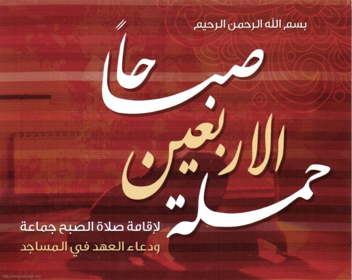 إنطلاقاً من الحديث الشريف كان مشروع حملة الأربعين صباحاً التي عبّر عنها سماحة السيد حسن نصر الله (حفظه الله) بقوله: "إنّ حملة الأربعين صباحاً أدخلت السرور إلى قلوبنا".