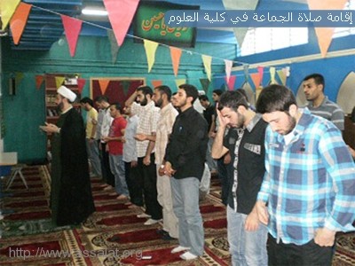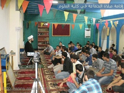 بمناسبة إفتتاح مصليين في مجمع الحدث الجامعي - كلية العلوم - مصلى ( للإخوة ) ومصلى ( للأخوات ) أُقيمت صلاة الظهرين جماعة في الكلية بإمامة مدير عام جمعية المعراج لإقامة الصلاة (فضيلة الشيخ ناجي حمادي)، وقد تخللها موعظة بين الصلاتين .